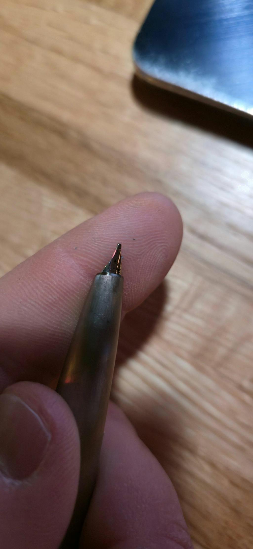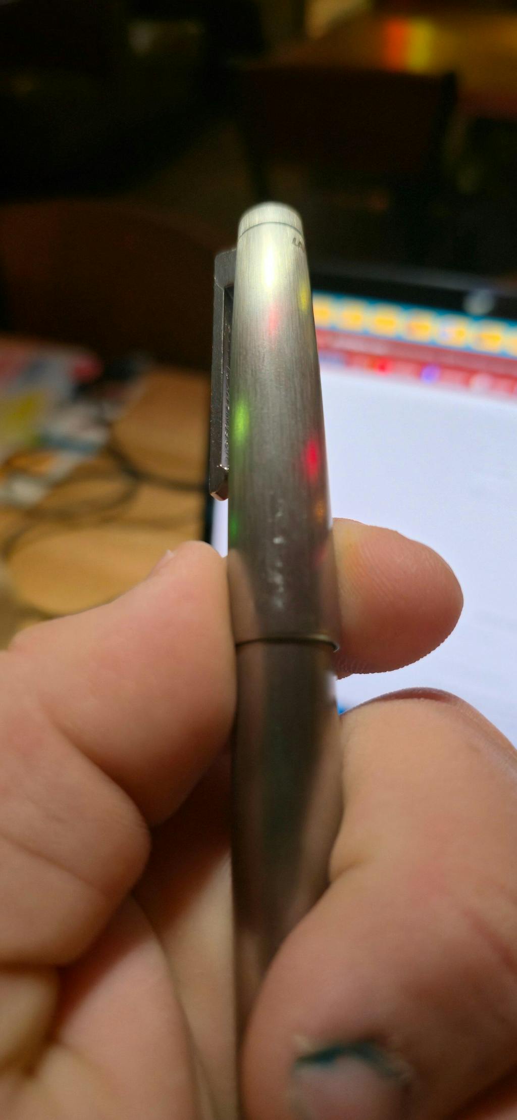 Measured from the place most people choose to rest their fingers, which varies with each pen.