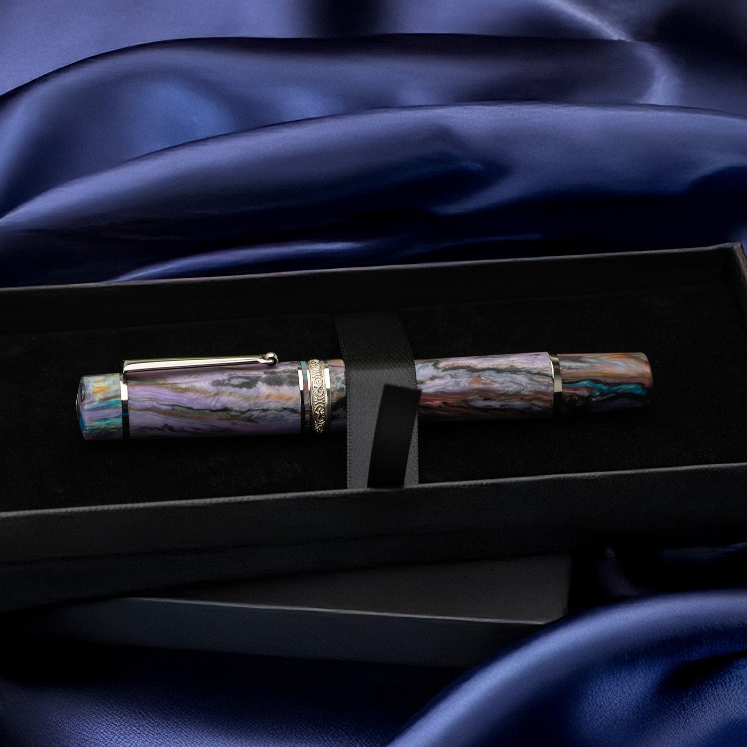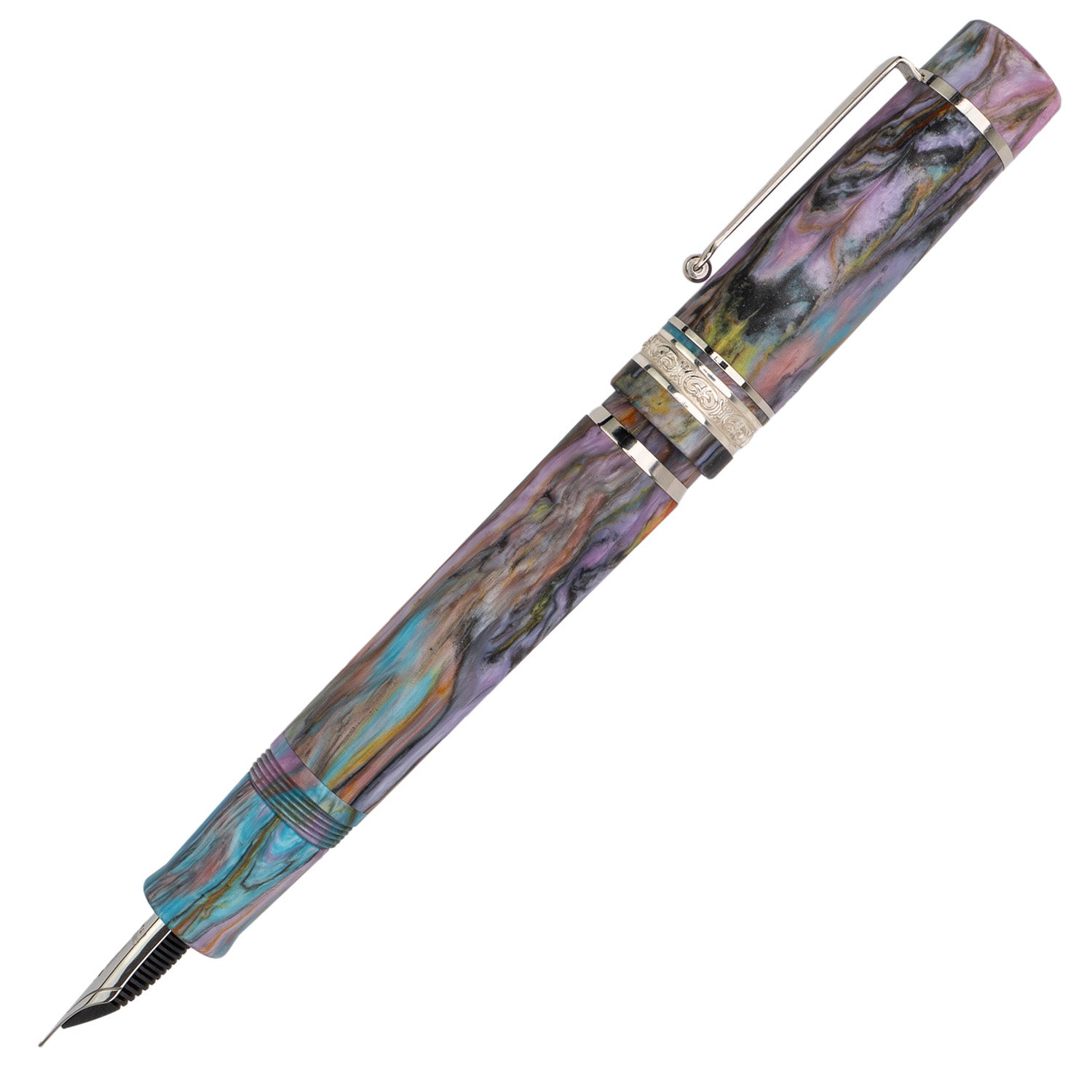 The original is back! This mid-sized Delta DV Original Mid-Size fountain pen features the popular Primary Manipulation 4.5 resin from Jonathon Brooks at the Carolina Pen Company. Complemented by sterling silver trim, it has a mid-sized comfortable design that fits perfectly in your hand. Equipped with a JoWo #6 steel nib, you'll be able to smoothly write with precision and ease. This is a limited edition release!