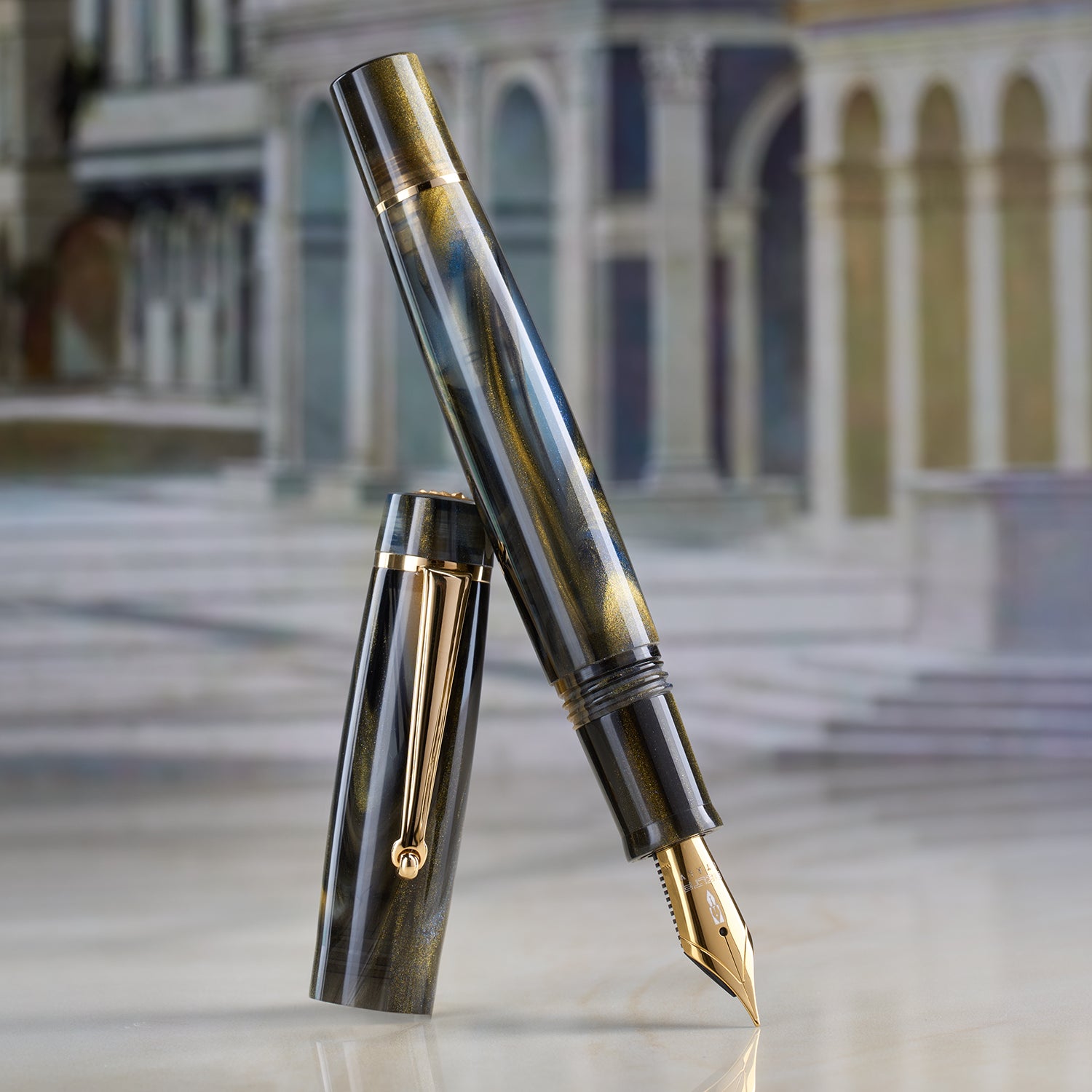 The Renaissance marks a time of extraordinary transformation, where man returns to the center of the universe and art becomes the voice of a new vision of the world. Drawing inspiration from classical antiquity but with an innovative drive, Renaissance artists celebrate beauty, knowledge, and harmony, creating masterpieces that blend science and poetry.Perspective revolutionizes pictorial space, bringing depth and realism to compositions, while intricate details become tools to exalt nature and the perfection of the human form. Renaissance art tells the story of an aspiration for earthly perfection, always intertwined with a spiritual dimension, elevating the everyday to a symbol of eternity. This fountain pen embodies the elegance and grace of an era that defined the standards of art and culture. Tones reminds of frescoes and the works of the great masters; each stroke is a tribute to the creative genius that changed the course of history.