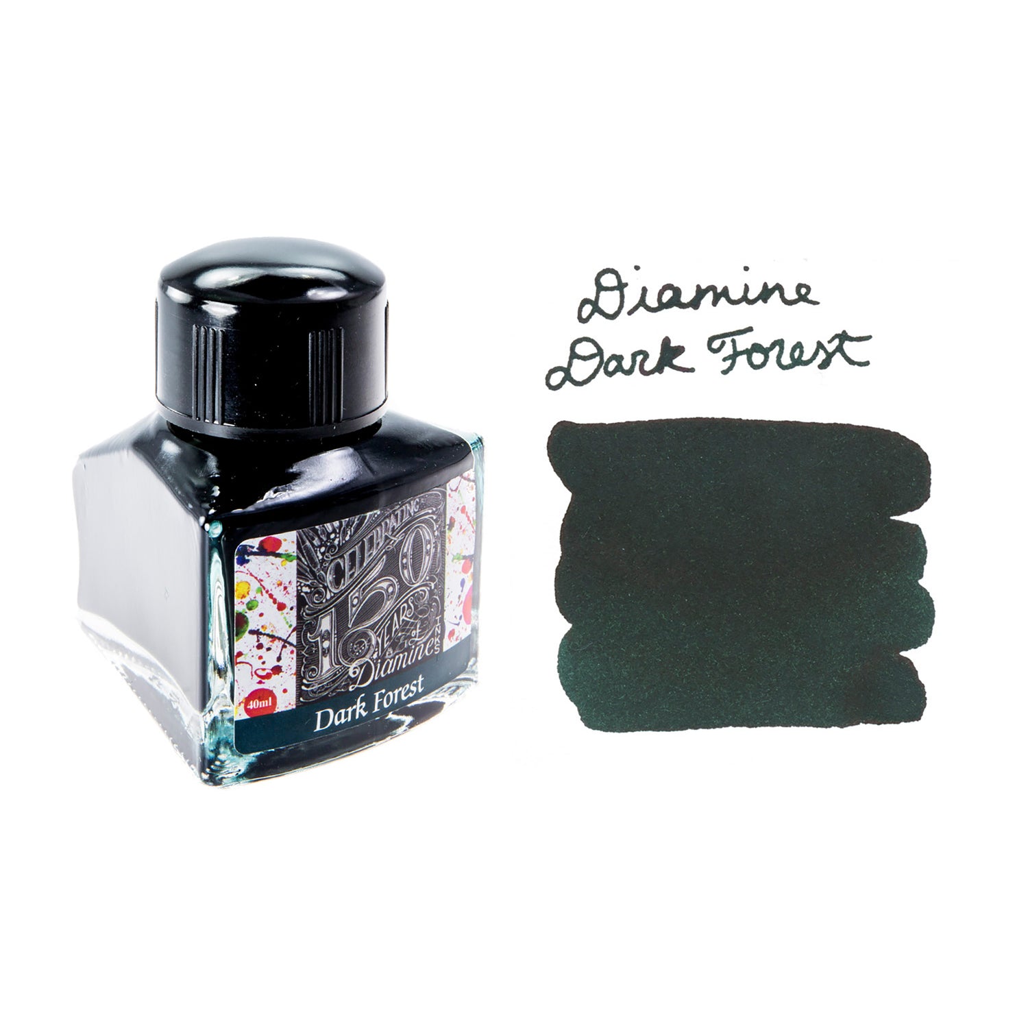 Diamine Dark Forest is part of the Diamine Anniversary Collection, created to to celebrate 150 years of the brand. These triangular design glass bottles contain 40ml of fountain pen ink. Together these bottles when collected can be arranged into a beautiful round desk display.