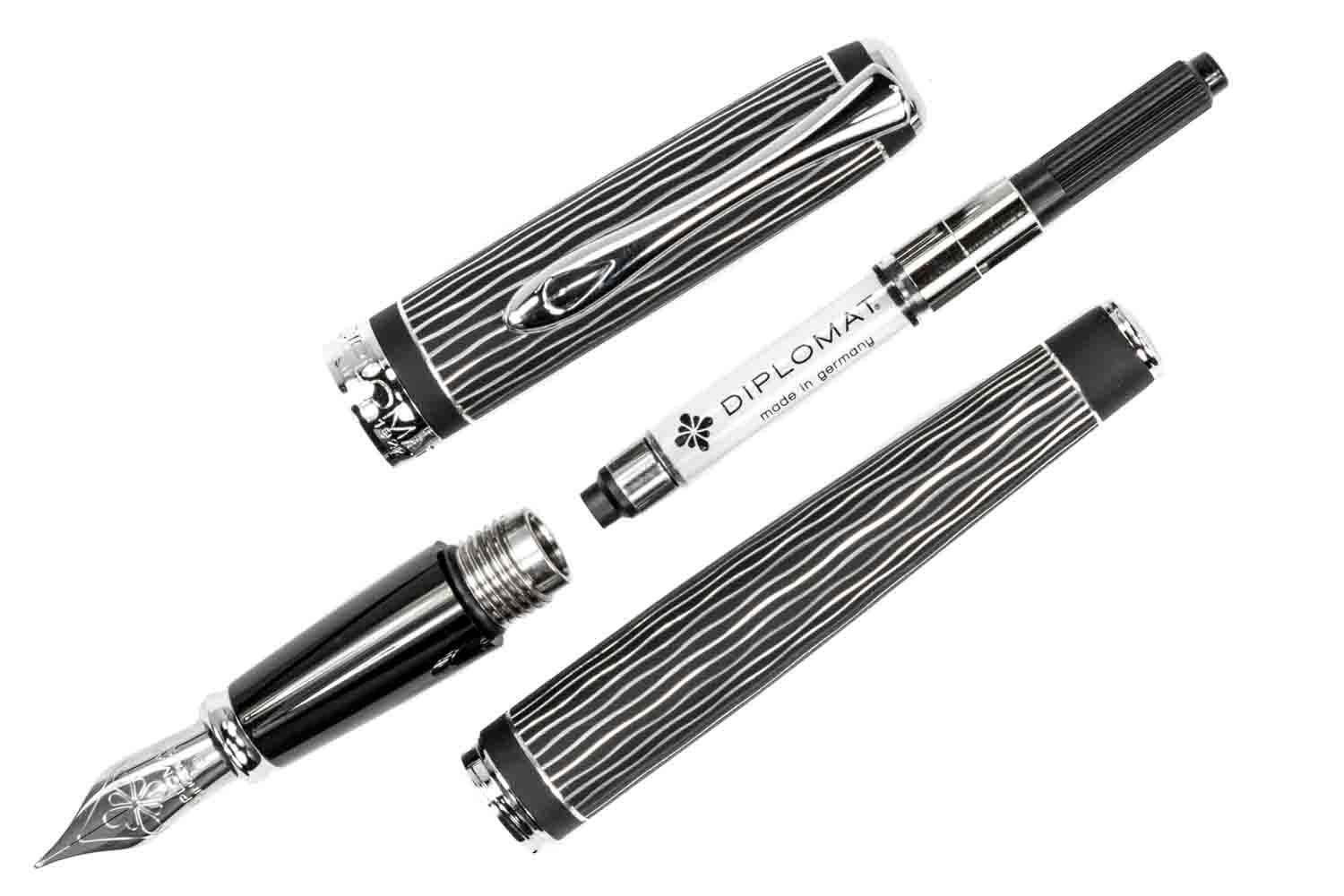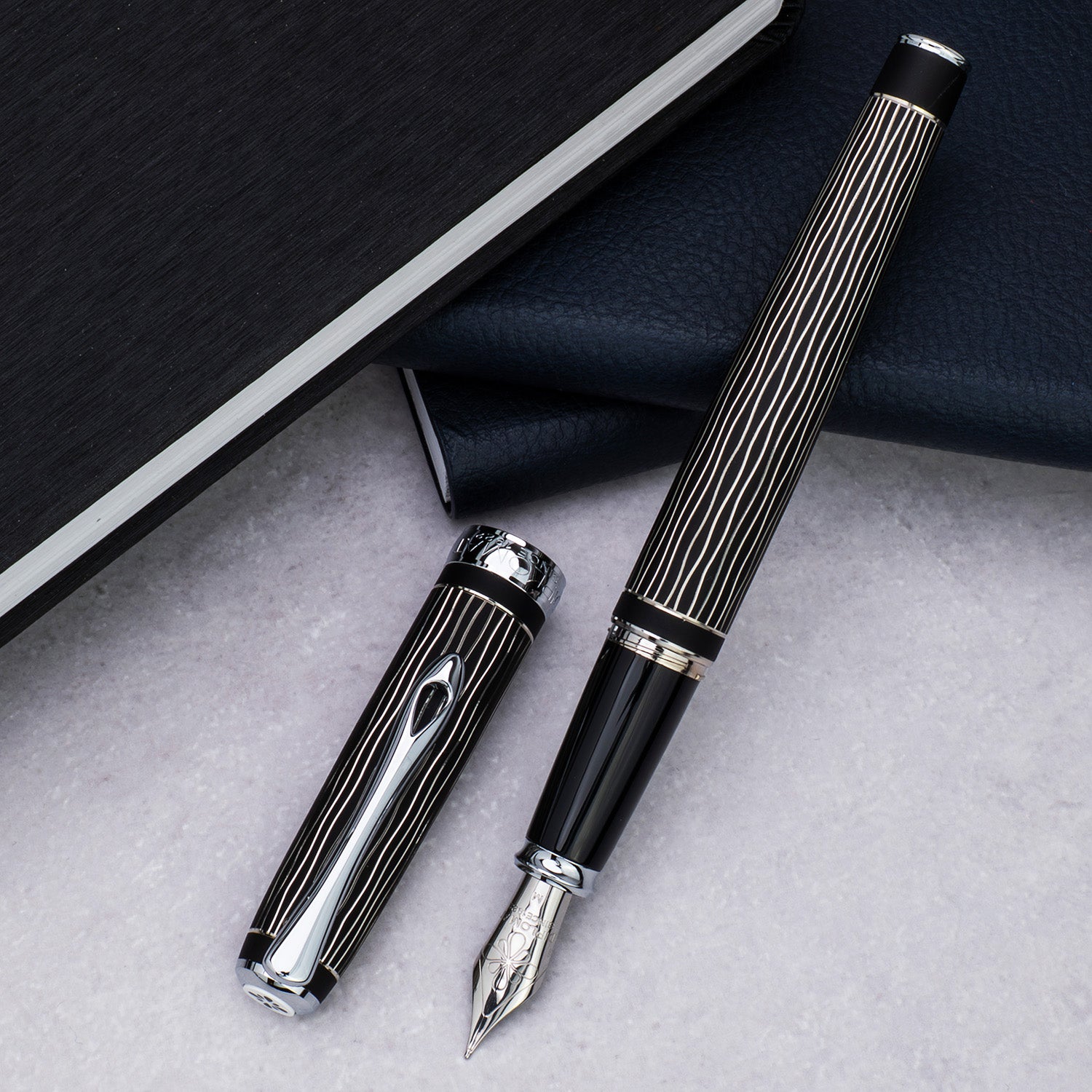 Diplomat Excellence A Plus Fountain Pen - Wave Guilloche Lapis Black