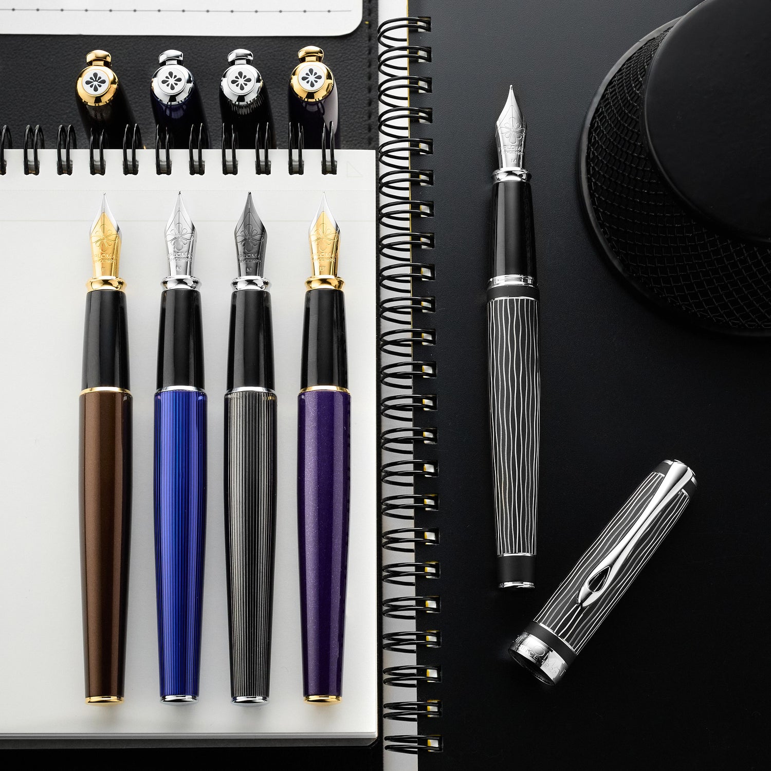 It features a gold-plated smooth writing #6 JoWo stainless steel nib, a black resin grip, and fills via standard international cartridge/converter (both are included).