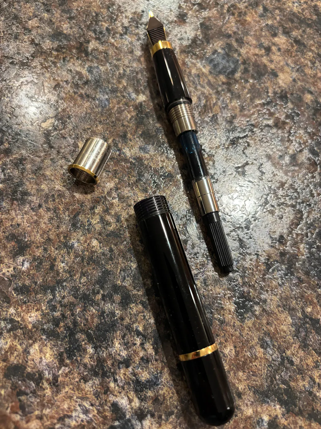 It comes with a two-tone steel #6 JoWo nib. Also included is a standard international converter inside of the pen.