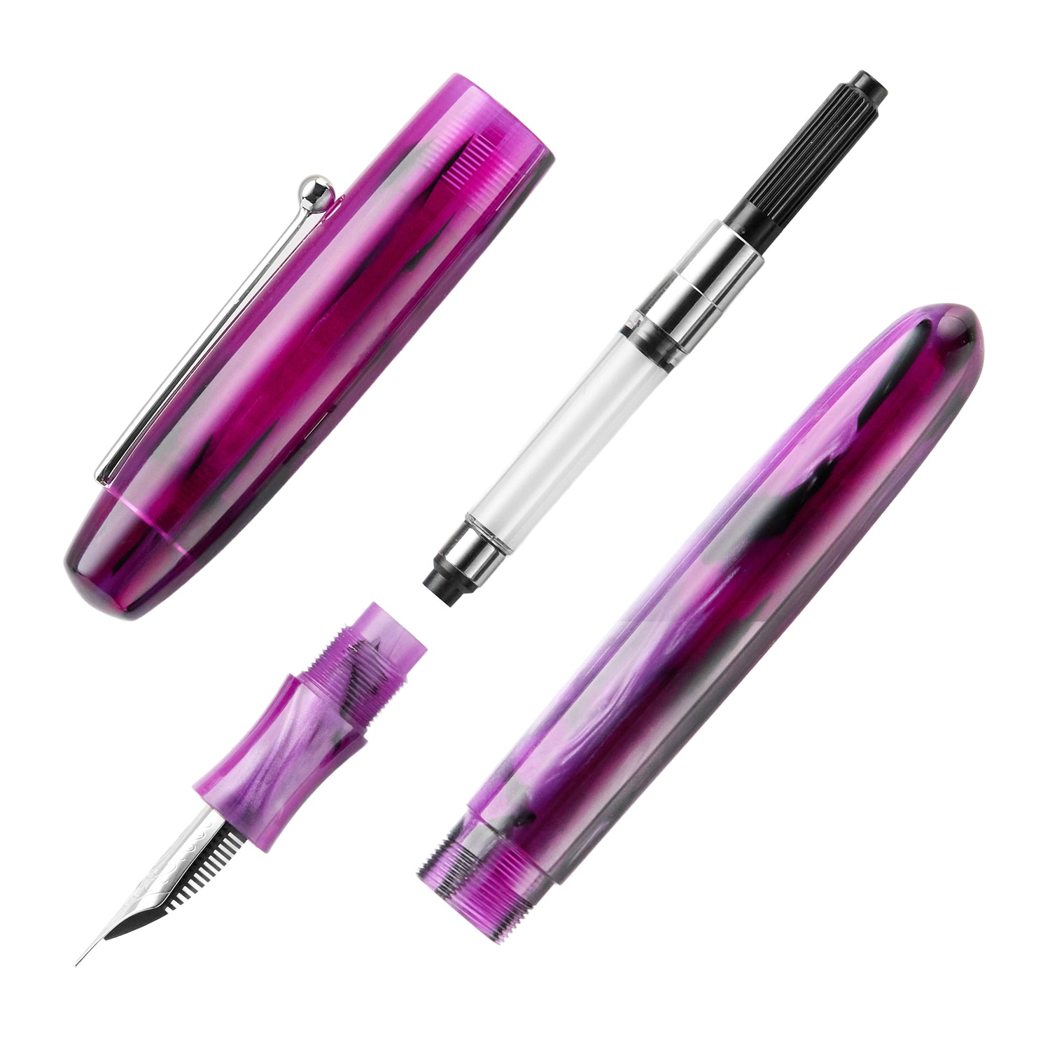 This Edison Collier pen is made of beautiful magenta resin with a silver clip, and a JoWo #6 steel nib engraved with the Edison logo. It accepts a standard international converter (included) or short standard international cartridges.