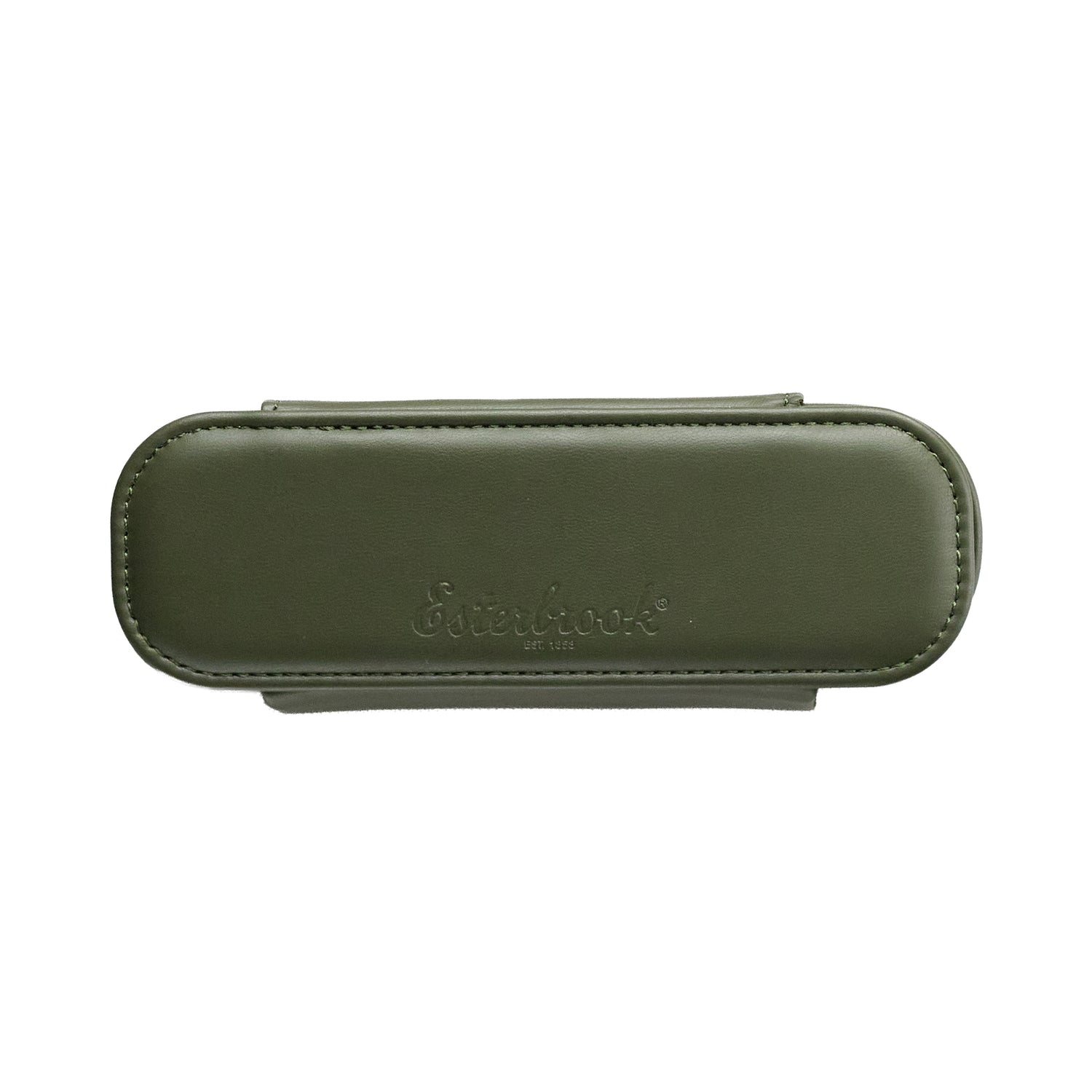 This green synthetic leather case holds up to 2 pens, each held snug in its own fabric-covered slot. The magnetic cover helps to keep the pens secure.