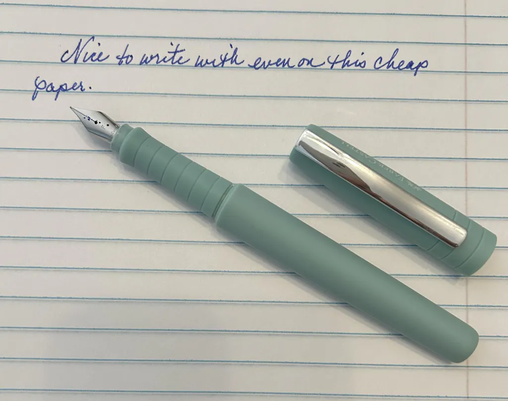 Introducing The Poly collection from Faber-Castell! This turquoise fountain pen features a non-slip, soft-touch barrel with ergonomic triangular grip zone. Each pen comes with a stainless steel nib, and the pen can be posted while writing. It is equipped with a cartridge/converter system, and the pen comes with 1 royal blue ink cartridge. Converter sold separately to use with bottled ink.