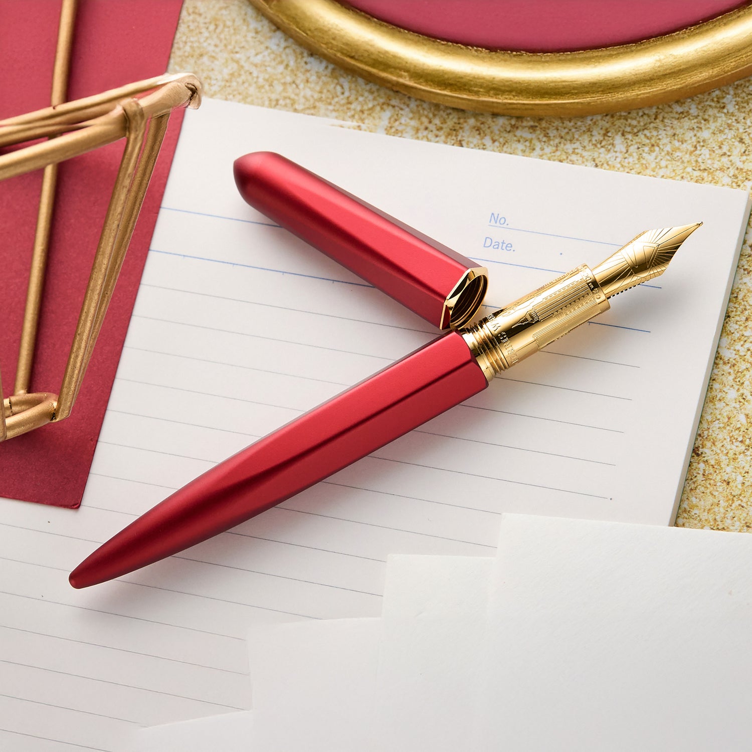 Confident and expressive, the voice of Metropolis pen & ink set stands out with a striking scarlet Superman Edition marquise fountain pen. Complemented by the Scarlet Metropolis 28ml bottled ink - a bold, luminous red with blue shimmer created to make a statement.