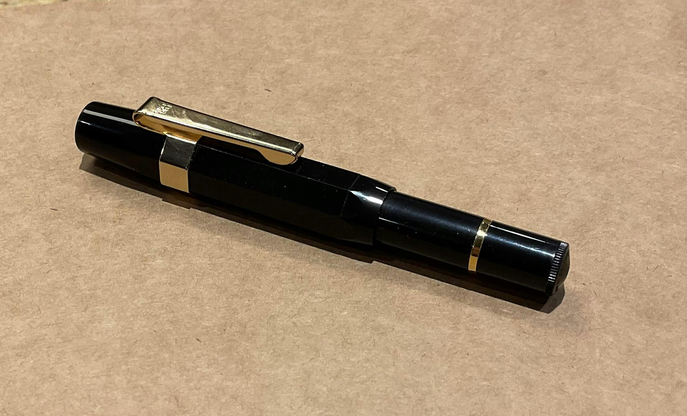 The Kaweco Sport is a pocket-sized fountain pen that when posted transforms into a full-sized pen that easily fits in your hand. This solid black resin fountain pen comes with a gold-plated steel nib. As a piston filler, it uses bottled ink only.
