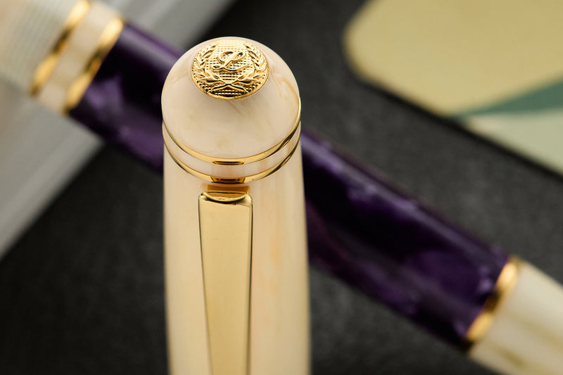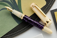 Laban presents the 325 Wisteria, a dreamy purple fountain pen. The beautiful ivory white cap and dark purple barrel are both made of acrylic resin and trimmed in gold-plated appointments.
