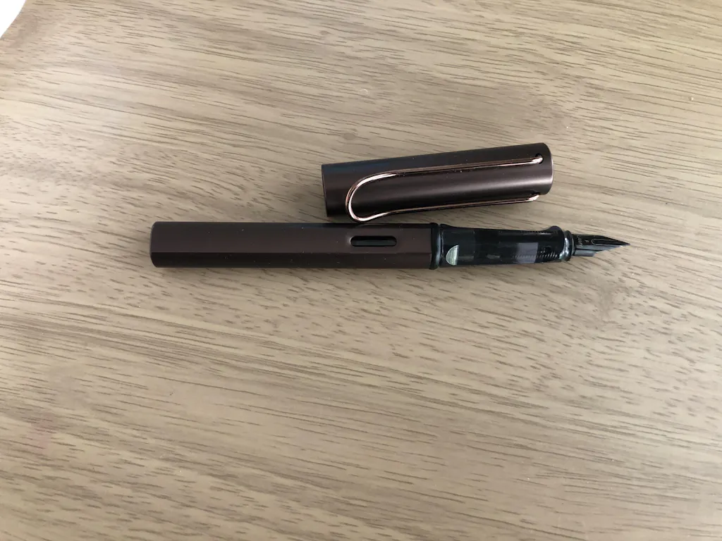 This pen comes with a matching brown anodized aluminum pen case. It also comes with a blue LAMY ink cartridge so you can get started writing right away. If you'd like to use bottled fountain pen ink, you can also purchase a LAMY Z28 converter.