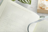 Other features include a 3-year overview, phases of the moon, official holidays in 58 countries, a project planner, a gusseted pocket in the back cover, 2 ribbon bookmarks, and a set of stickers for labeling the cover and spine for archiving.