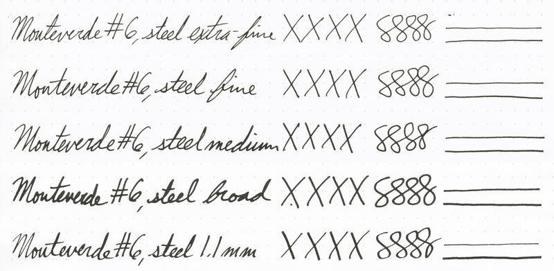 This black replacement Monteverde #6 fountain pen nib unit features a smooth writing German-made JoWo steel nib. Both the feed and housing are included.
