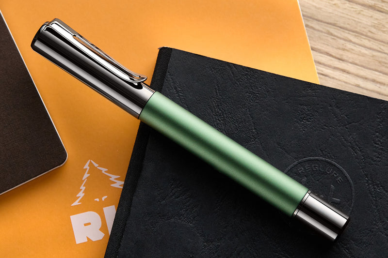 An exciting feature of this minimalist pen is the magnetic cap and posting, so secure and perfectly designed to the pen it creates a seal. No need to twist off, gently pull and enjoy the striking pop-action sound of the seal opening, then post to the back to experience the secure magnetic seal there as well.