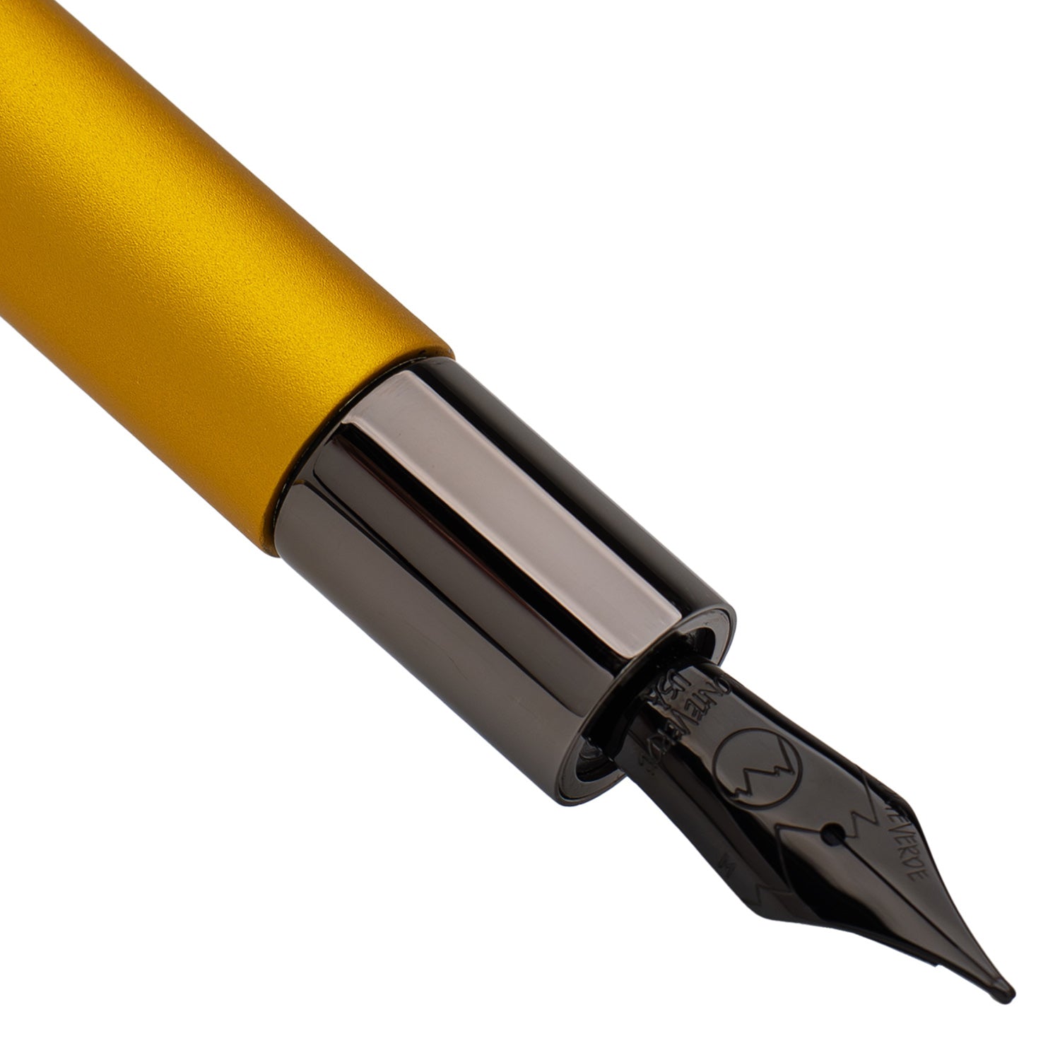Each aluminum barrel is anodized in a metallic yellow color and treated with a matte finish, resulting in a muted pop of vibrant colors that are soft to the touch and beautifully accentuated with polished gunmetal accents. The clip is designed to match the straight lines of the body style with an extra flair, the center cut in an elongated oval shape for ease of use.
