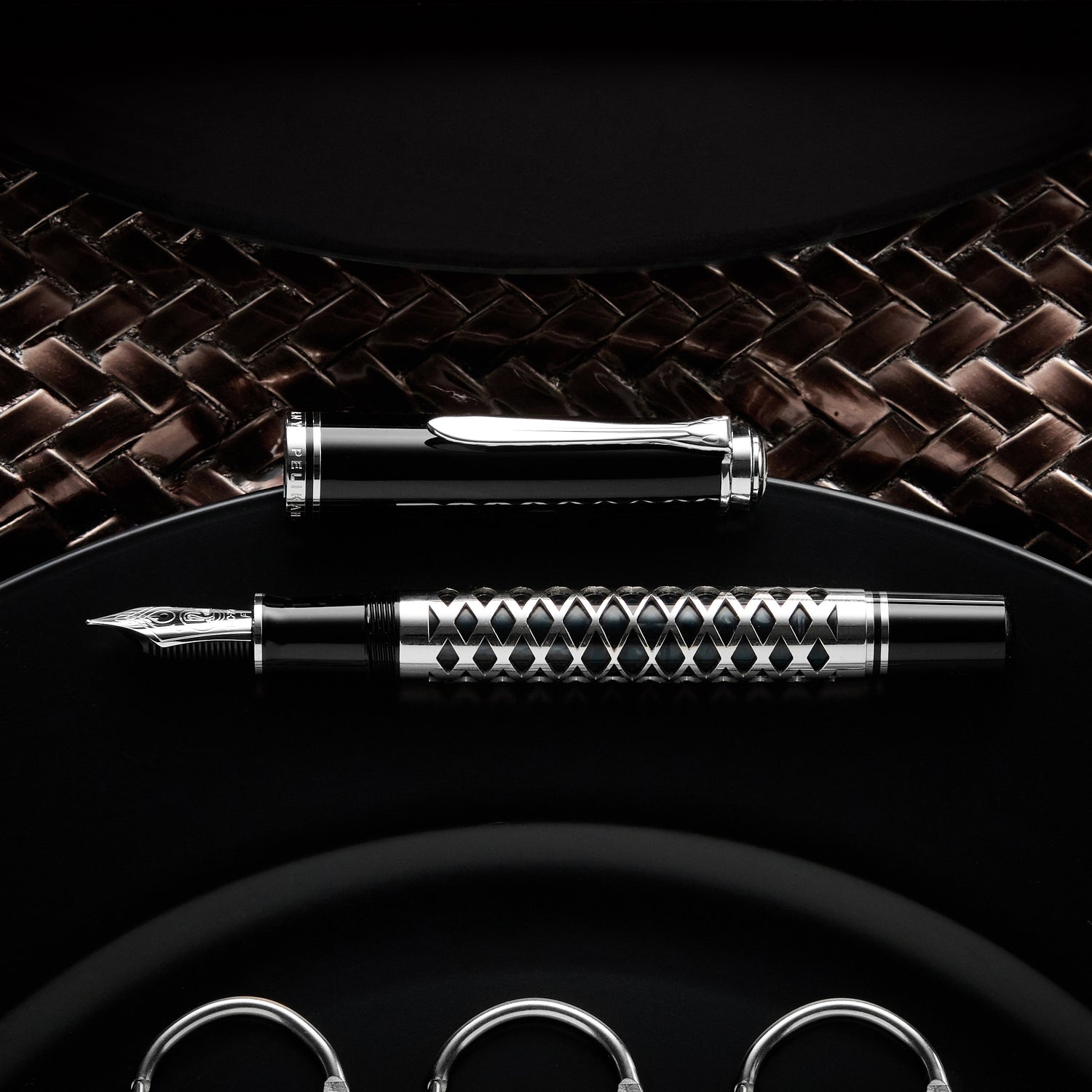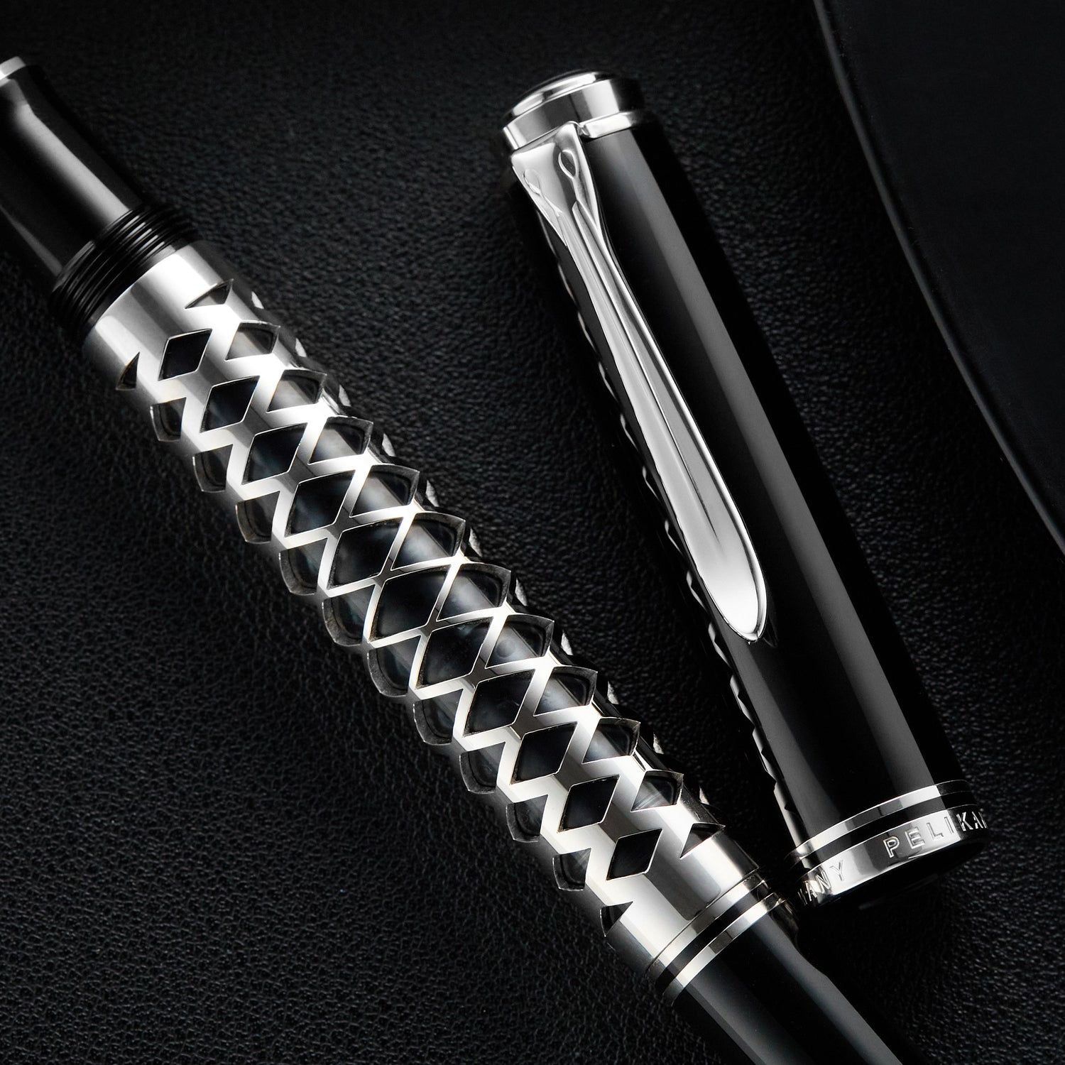 Introducing the special edition Pelikan M805 Metal Sleeve, a bold evolution in fine writing instruments. Designed for those who value innovation and distinctive aesthetics, this special edition brings together two refined materials: a polished black acrylic barrel and a meticulously laser-cut silver metal sleeve.