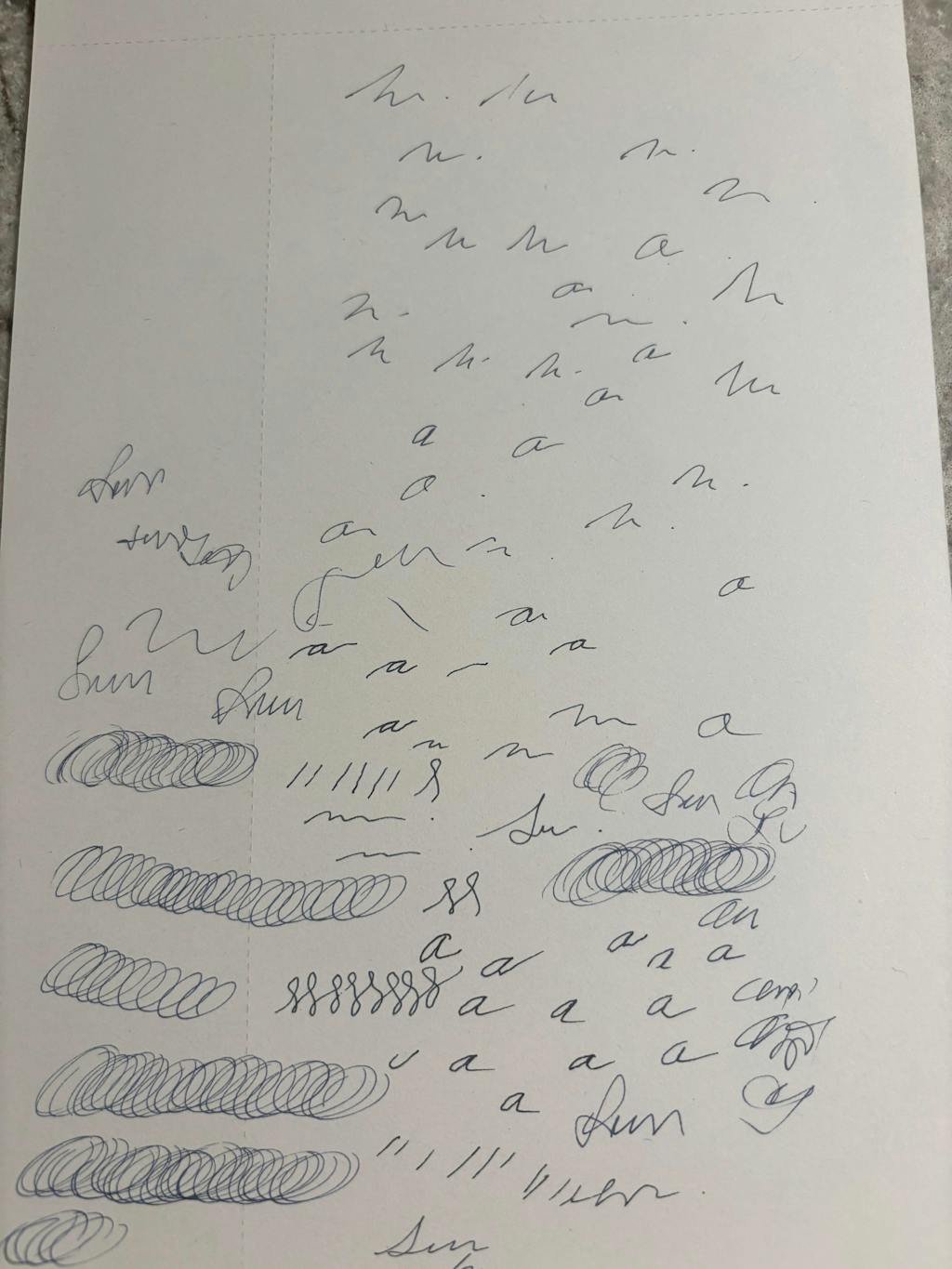 Measured from the place most people choose to rest their fingers, which varies with each pen.