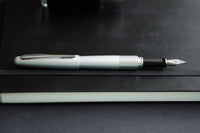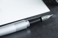A fantastic value from Pilot, the Metropolitan is a favorite first fountain pen. This silver-colored metal bodied pen has a glossy silver accent band, silver trim, and a steel nib. It comes with a black Pilot ink cartridge and a converter to use with bottled ink. As Pilot continues to make rolling changes to the style of converter included, the converter will either be a Con-B or a Con-40. We are unable to accommodate requests for specific converters to be included.