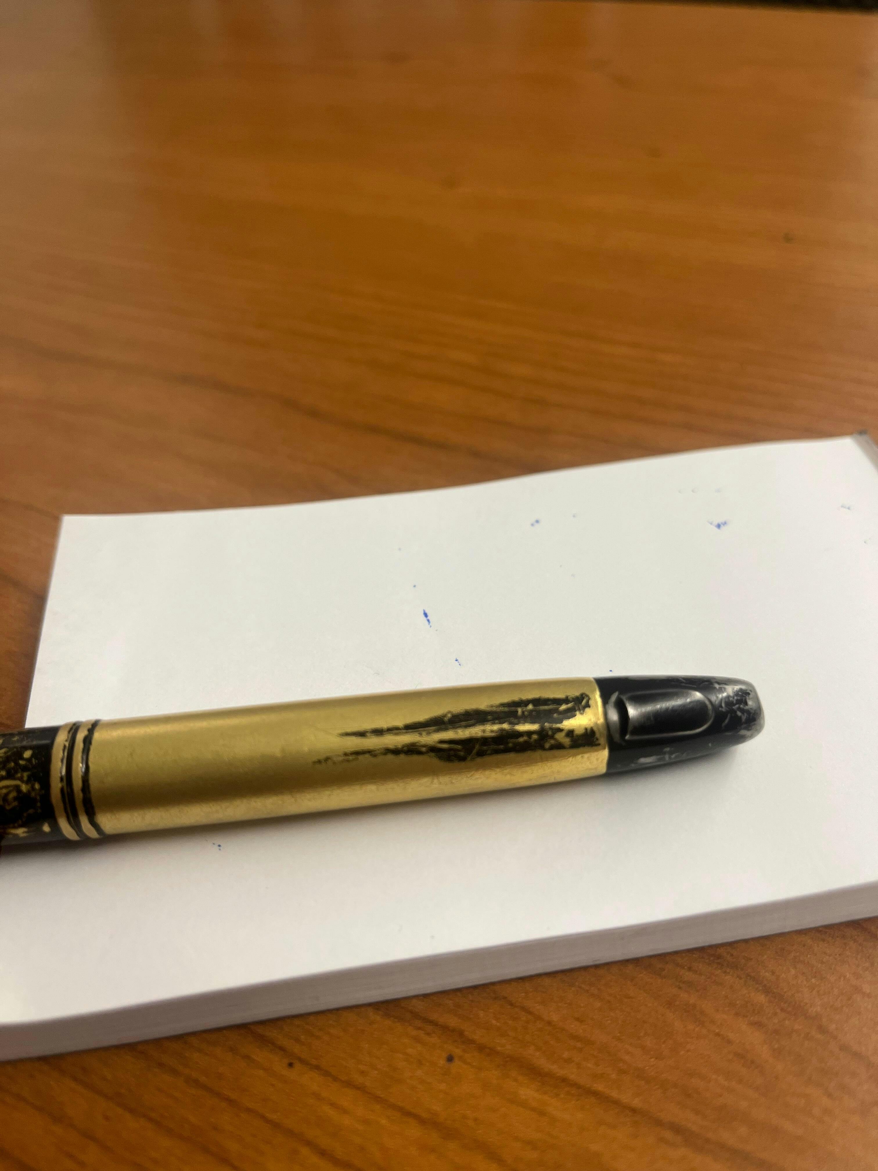 Measured from the place most people choose to rest their fingers, which varies with each pen.