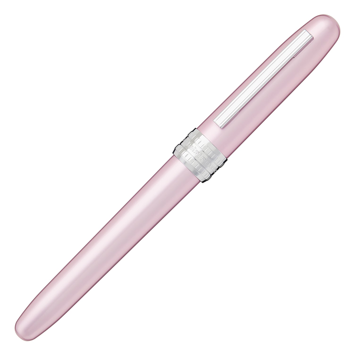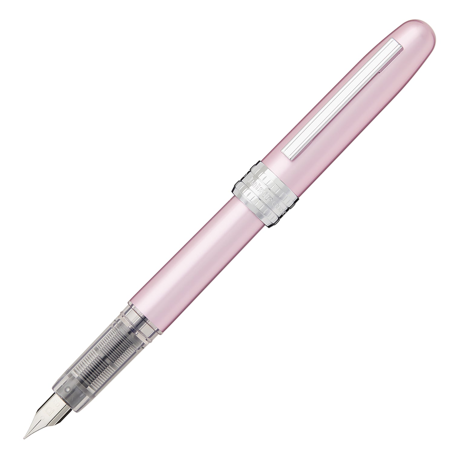 The Platinum Plaisir fountain pen features a cap which prevents ink from drying, enabling smooth writing even after no use for a whole year. The outside body is made of aluminum and has a superior shiny finish due to its special anodized coating. This fountain pen has a pastel pink barrel and cap, silver trim, a stainless steel nib, and accepts proprietary Platinum cartridges (one is included) or a Platinum converter (sold separately).