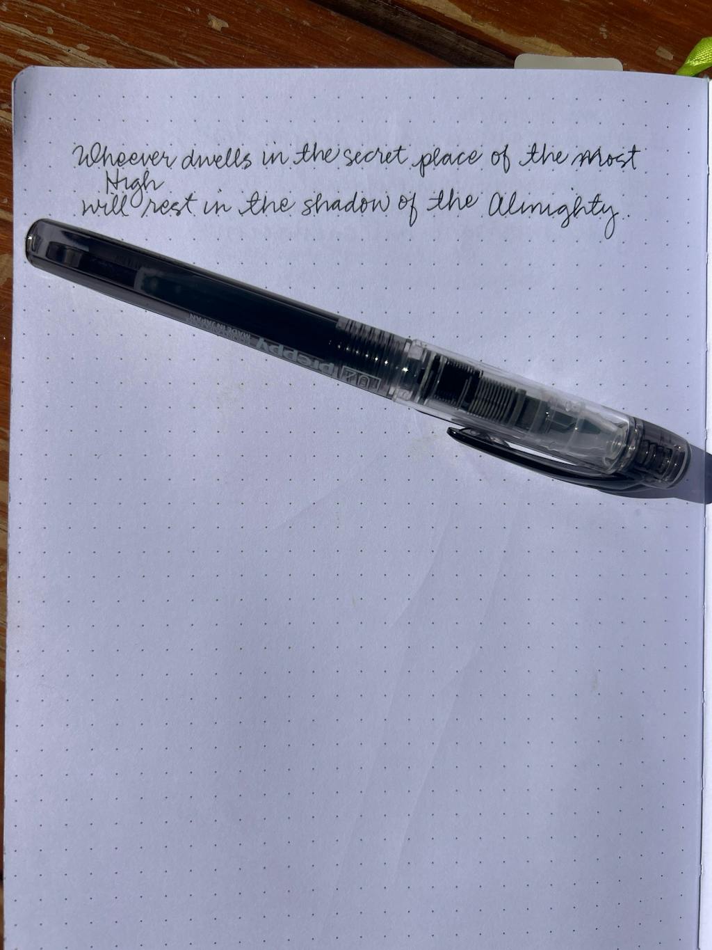 Measured from the place most people choose to rest their fingers, which varies with each pen.