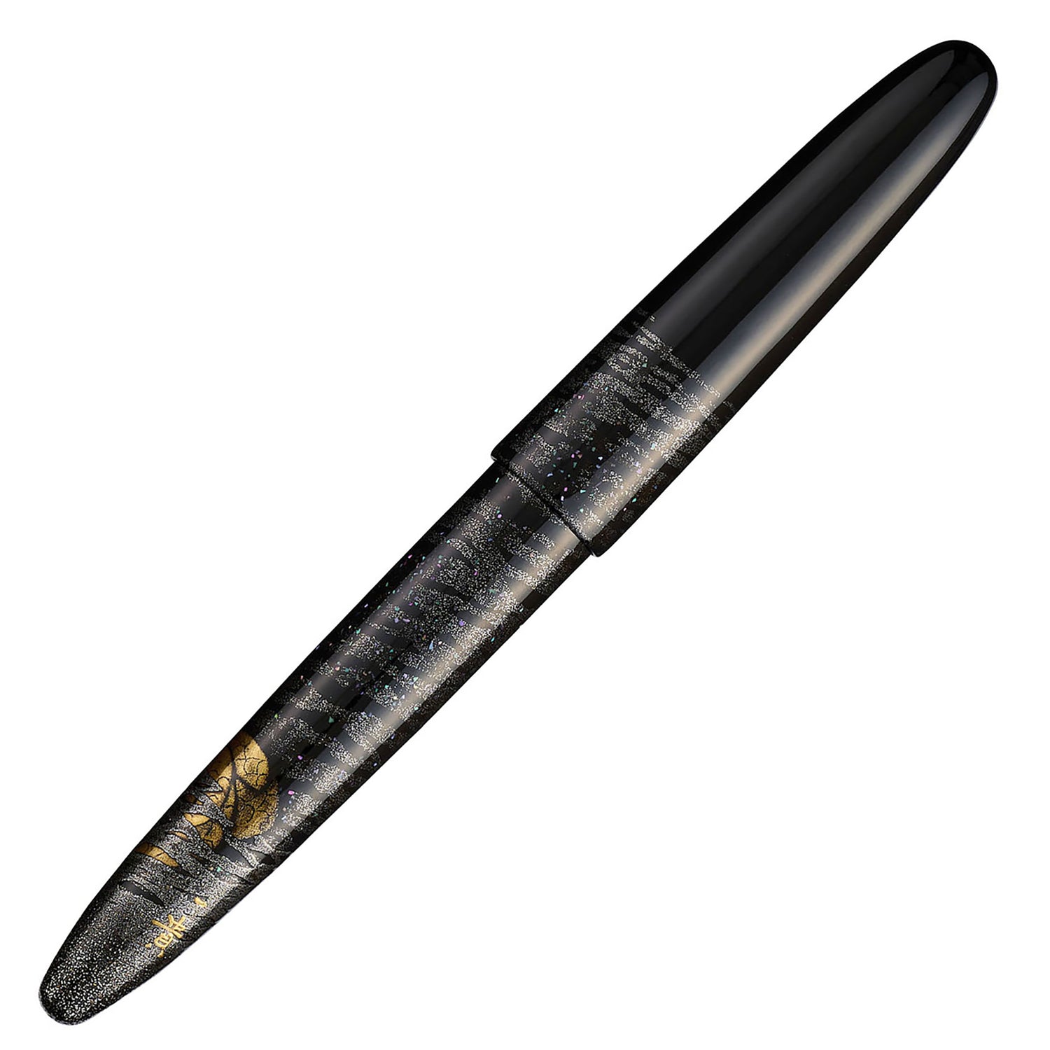 This King of Pen sized ebonite pen is made by Maki-e artist Ikki Moroike, who carefully places each detail to create the final breathtakingly intricate design of a lone wolf howling up to a midnight moon.