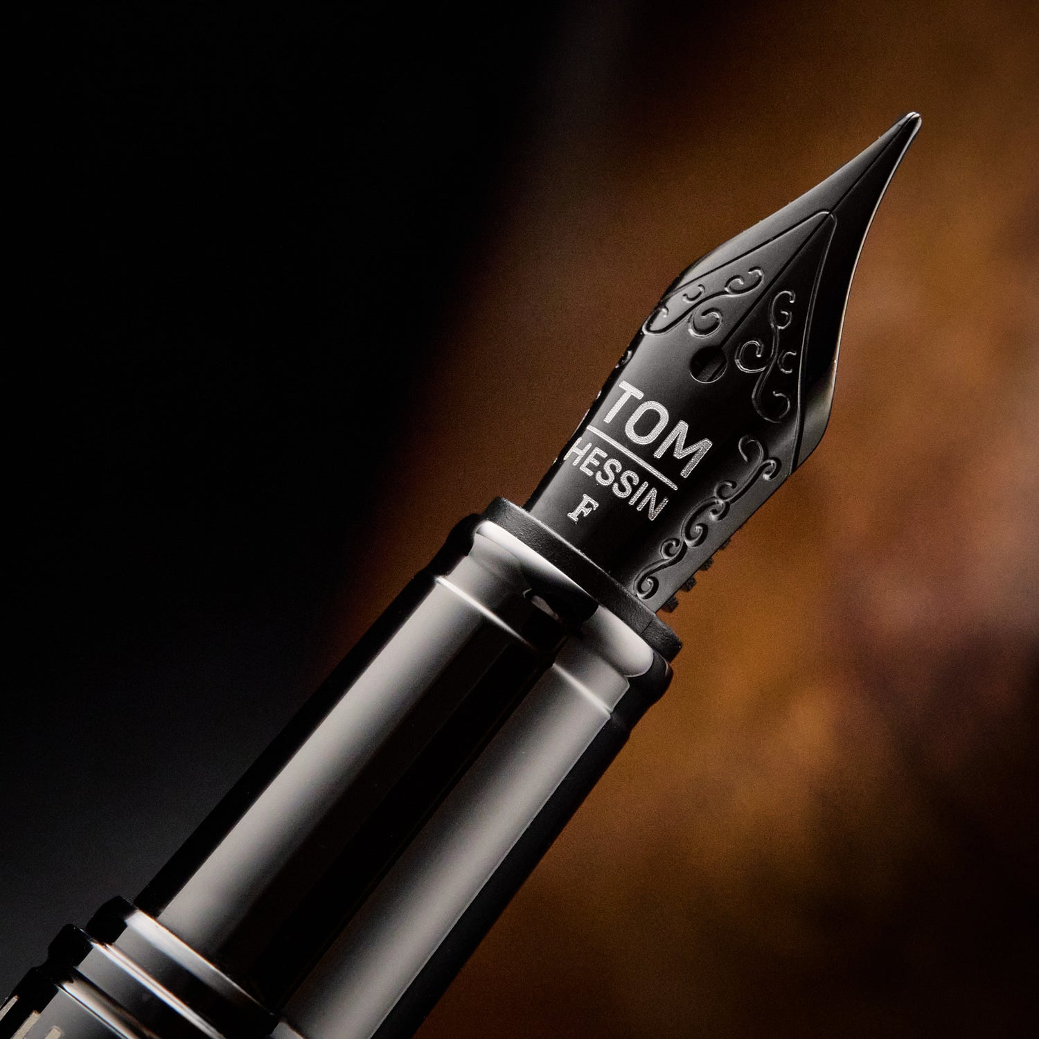 Featuring a reliably smooth PVD JoWo nib x Tom Hessin, the Revolution provides a smooth writing experience. Adorning the push close cap (which can be posted) is a gunmetal clip that features an engraved five diamond design detail, emblematic of the five generations that span the Tom Hessin legacy. The understated style continues with an attractive band featuring the Tom Hessin name.