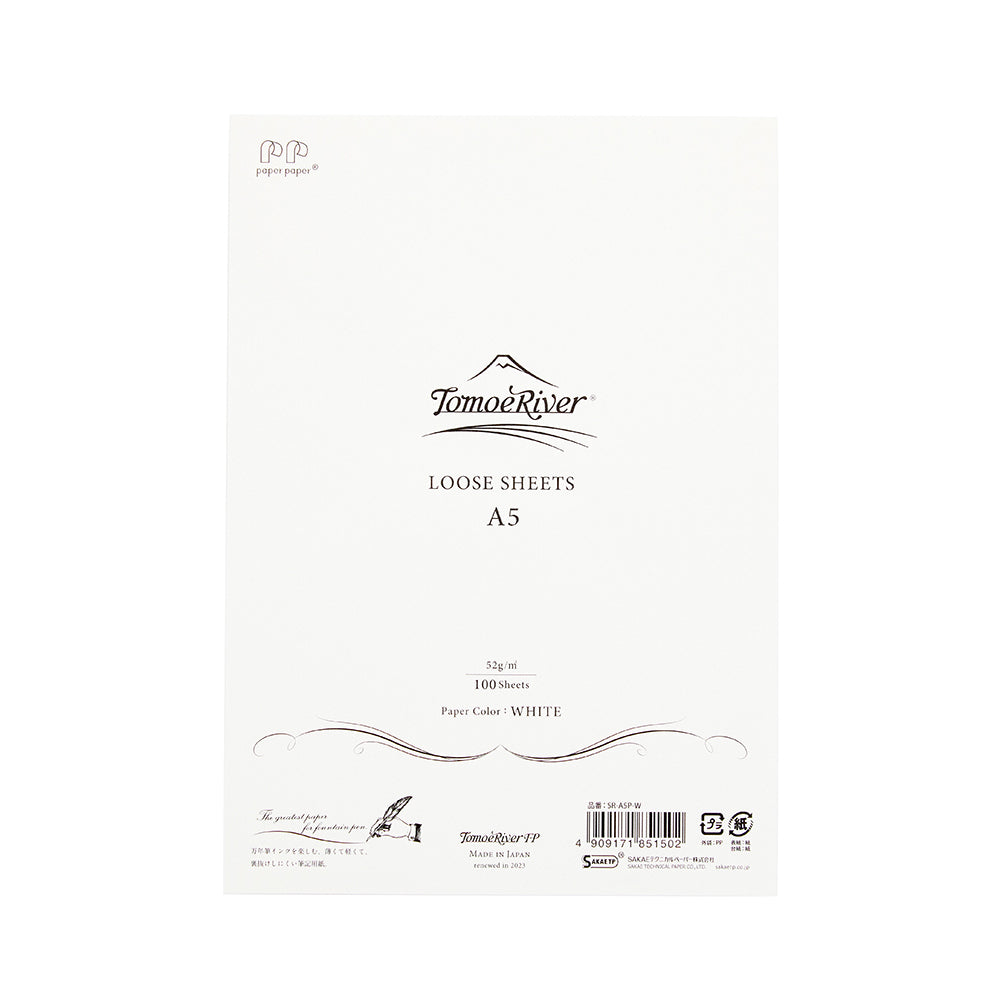 Imported from Japan, Tomoe River paper is known for being incredibly thin (52gsm!) yet incredibly fountain pen friendly. This product includes 100 loose sheets of blank white A5-sized paper, which is acid-free and pH neutral.