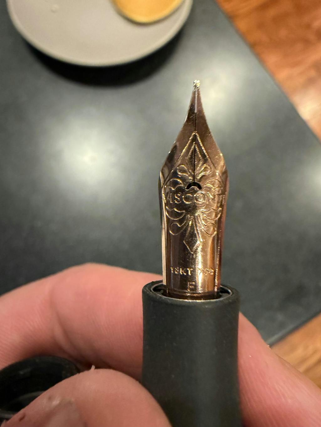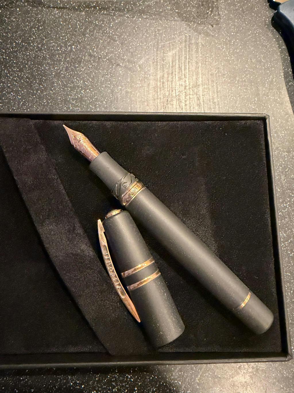 Visconti has recently updated their branding and font used on their clips. During this transition, you may receive a pen with a slightly different font than what is shown here.