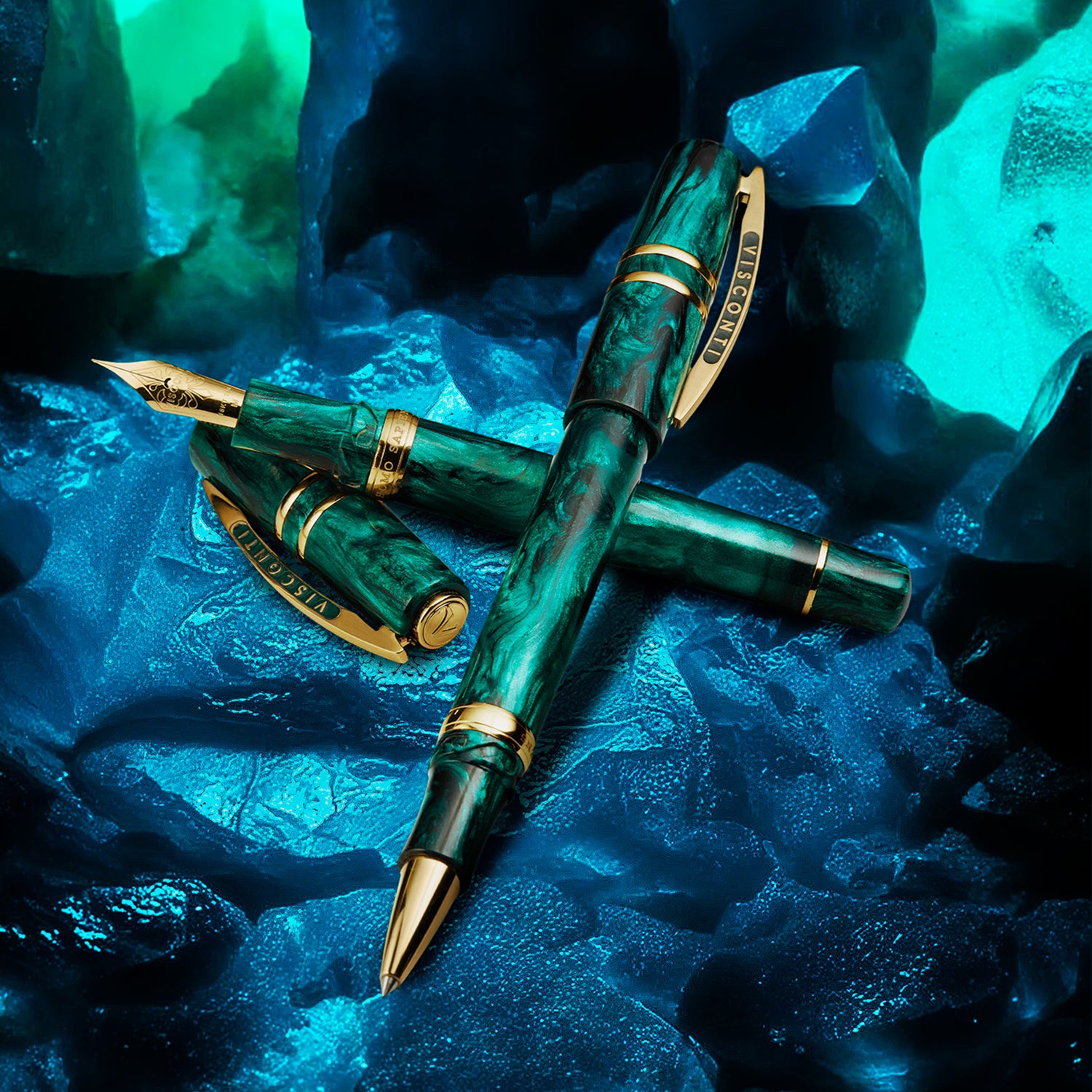 The enameled clip, matched in color, completes the visual harmony. Both models are fitted with Visconti's precious 18kt gold nib, a symbol of Italian craftsmanship excellence and a guarantee of a fluid, precise, and harmonious writing experience.