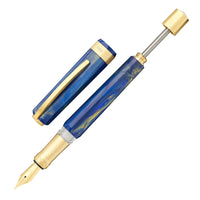 As always, Visconti excels at creating uniquely swirled resins, this time in 3 classic colors. The Opera Gold collection is available in blue, red and black infused with gold marbling. Matte finish gold plated trim completes the elegant design of this classic Visconti pen design featuring a large yellow gold plated stainless steel nib.